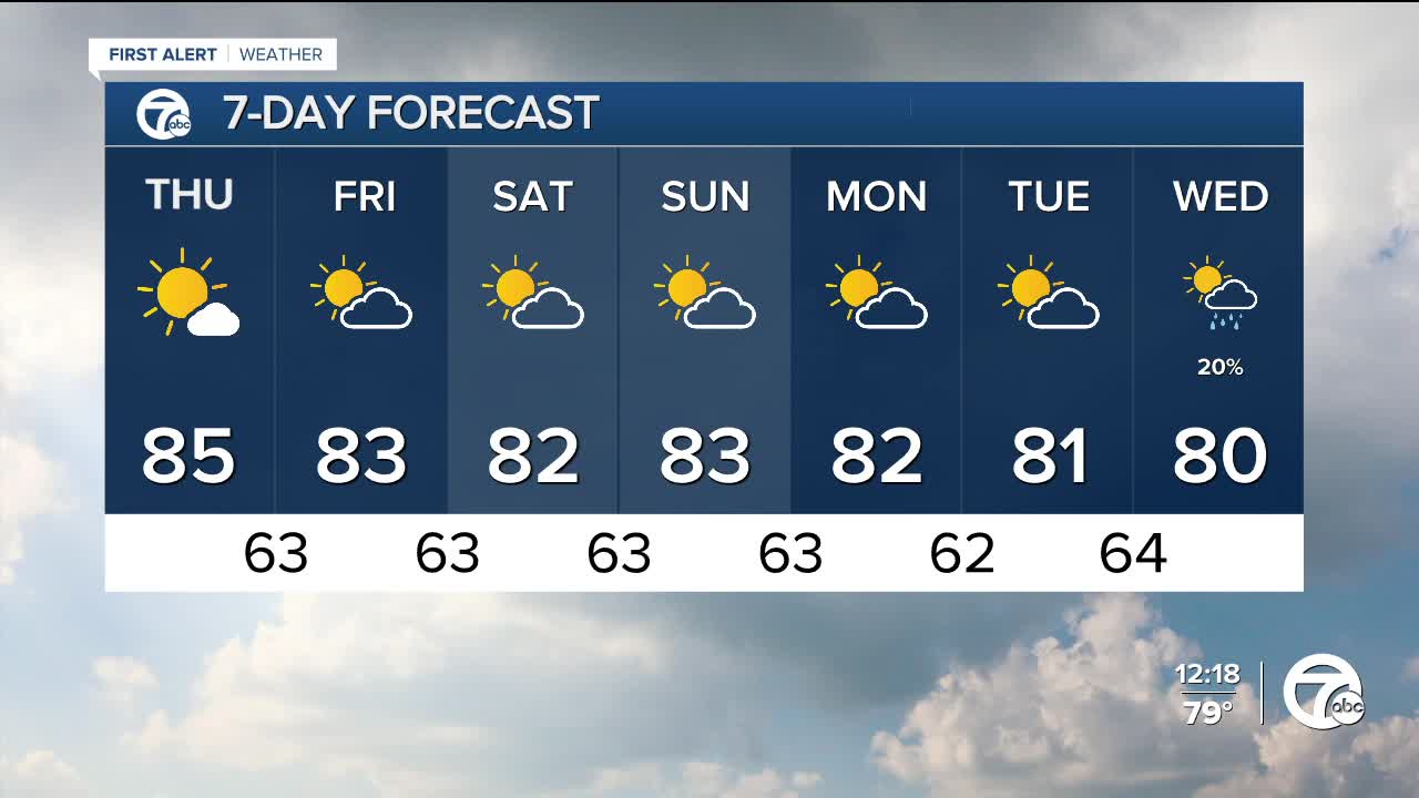 Some fog and low clouds are possible again Thursday morning. It will stay warm and dry for days with highs in the low to mid 80s through the weekend.
