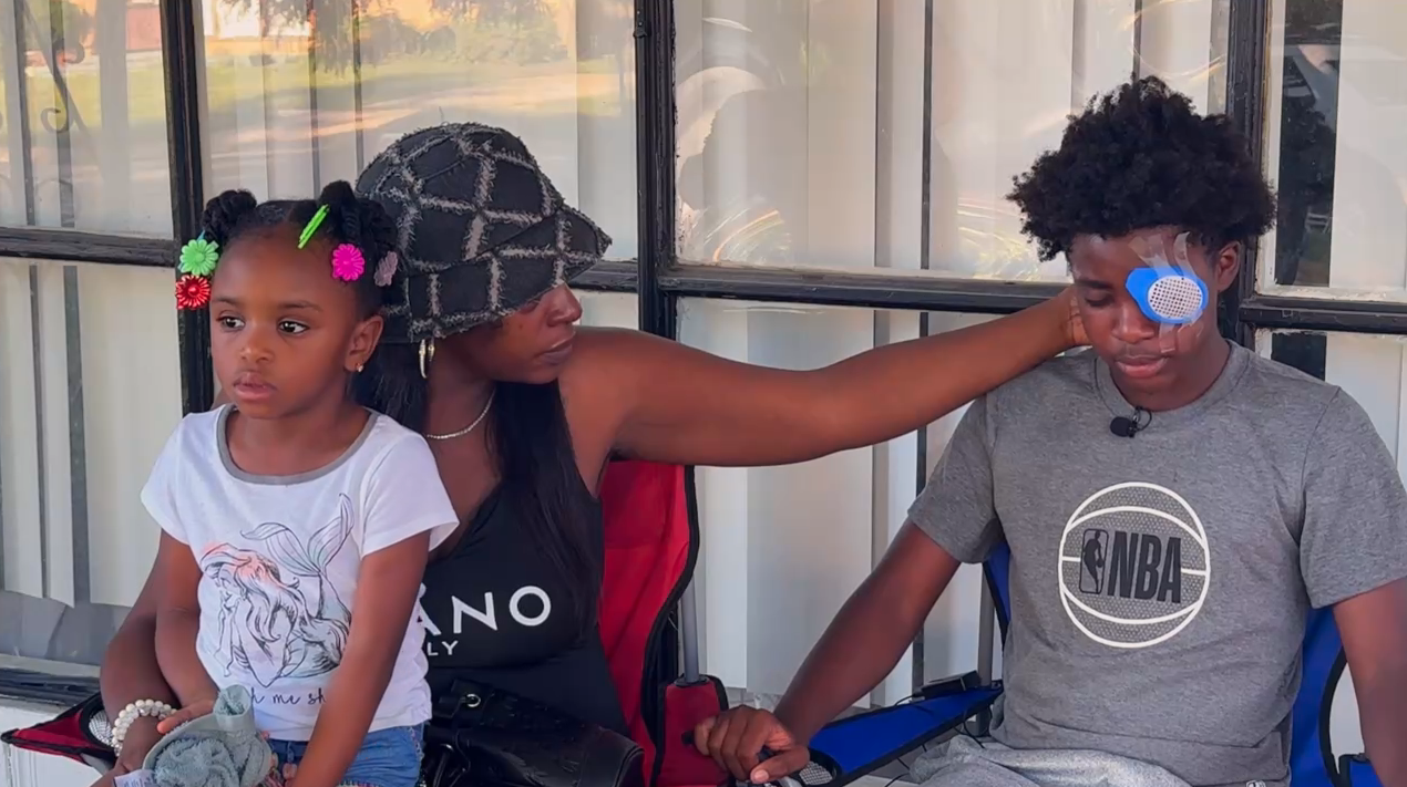"You messed my baby up. My baby might not be able to see again because of you, whoever you are. He may not be able to see again," Patrick said.