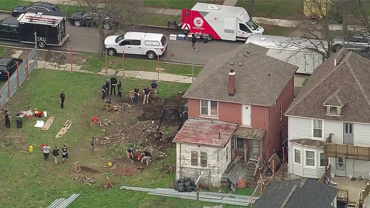 Photos show crews digging in the backyard of a home on Oregon St., just off of Beechwood and north of Tireman Ave., west of I-94.