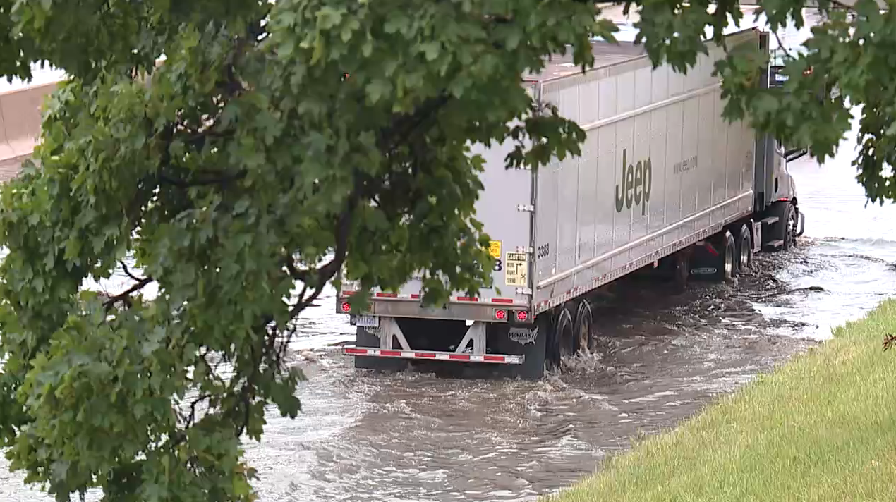 In Detroit, heavy rainfall flooded both directions of I-75 near 7 Mile Road, causing traffic backups and a freeway closure. The city's Bagley neighborhood also reported downed trees and power outages.
