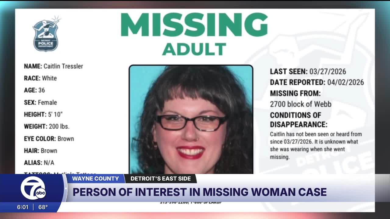 DETROIT (WXYZ) — The Detroit Police Department is investigating the disappearance of 36-year-old Caitlin Tressler and has said her boyfriend is a person of interest.