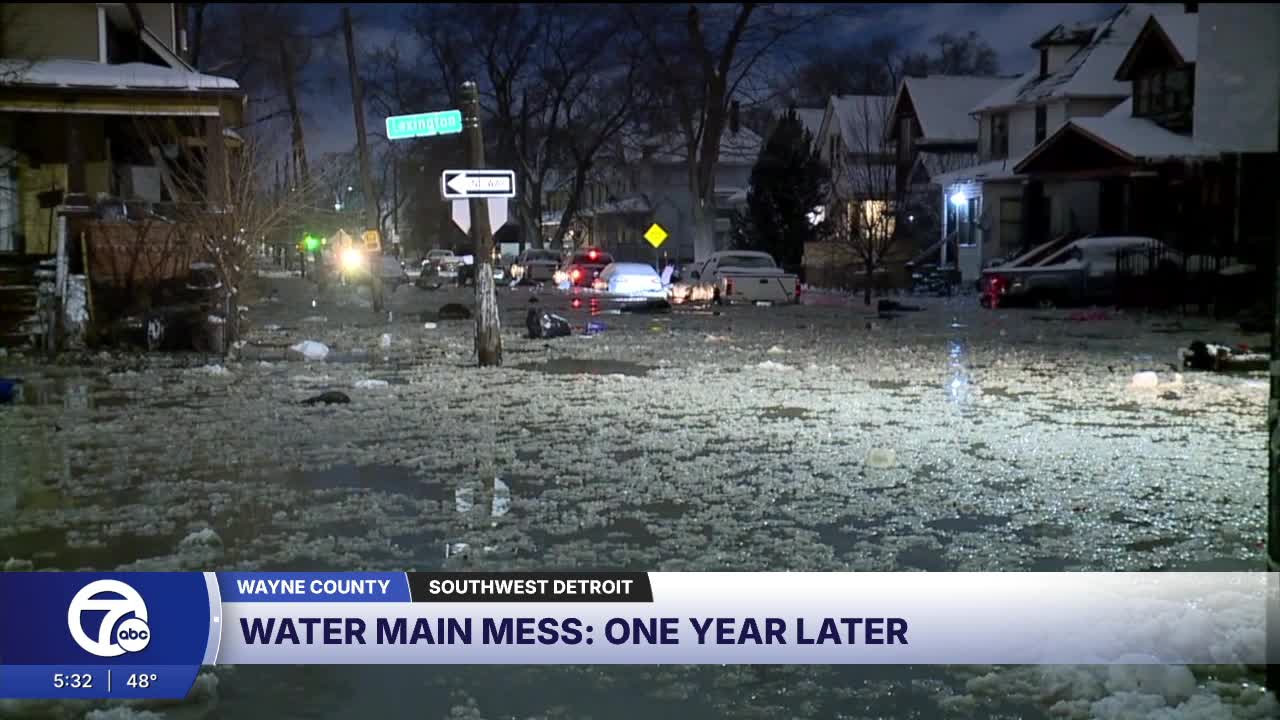 DETROIT (WXYZ) — Tuesday marks one year since a massive water main break devastated neighborhoods in Southwest Detroit, sending a wall of icy water rushing through streets, trapping cars, and flooding homes.