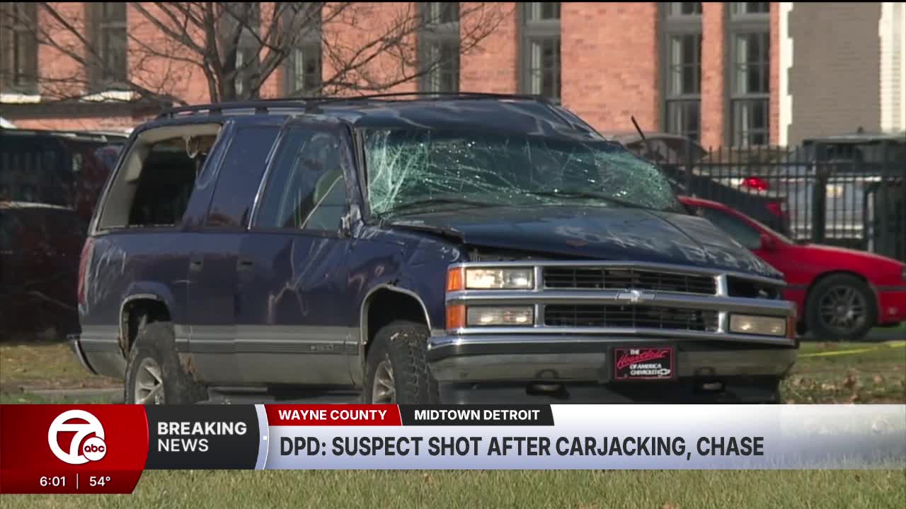 According to police, the surveillance spotted the suspect coming out of a house earlier Friday. When those officers got close, police say, the suspect took off. Police say he made it to Livernois and Fullerton, where he jumped out of his vehicle and carjacked a Chevy Suburban. Three ATF agents fired at the suspect in this incident, which occurred around 12:40 p.m., but he took off again. The driver of the Suburban was not injured.