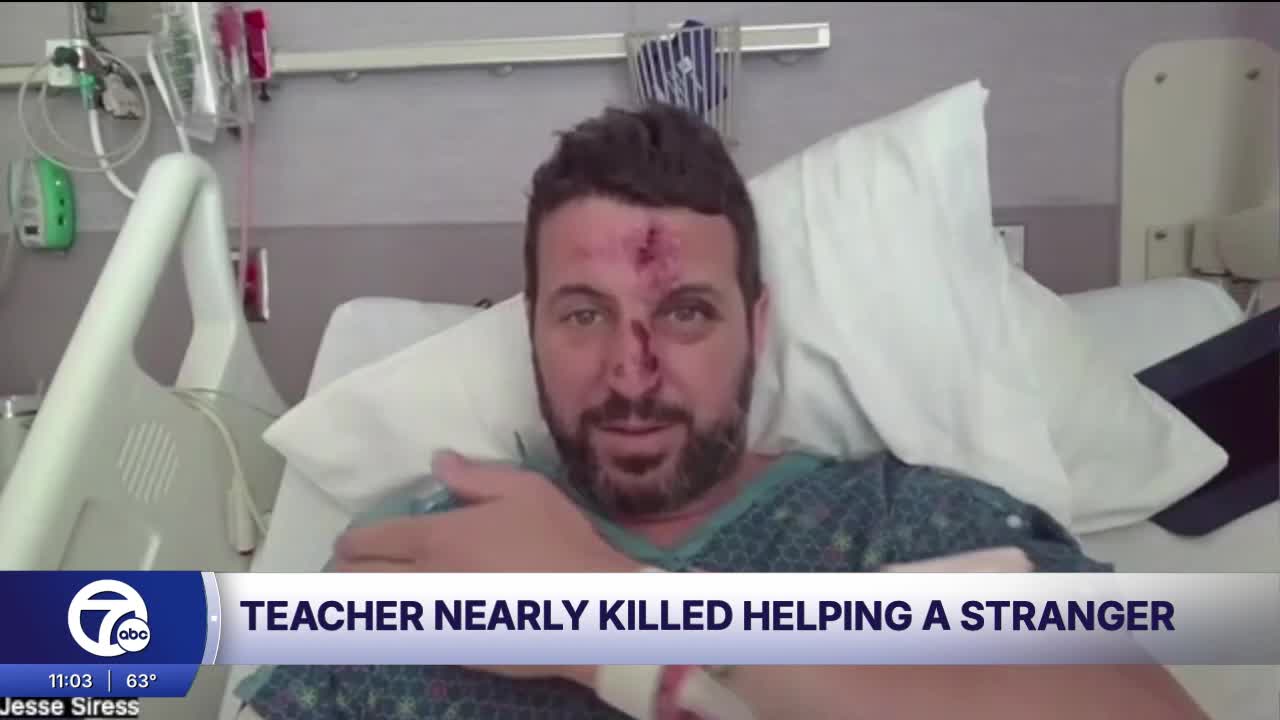(WXYZ) — A Macomb County teacher is recovering in the hospital after being hit by a truck while trying to help a stranded driver in St. Clair County.