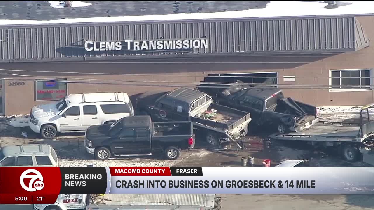 FRASER, Mich. (WXYZ) — A vehicle appears to have crashed into an auto repair shop in Fraser on Wednesday.