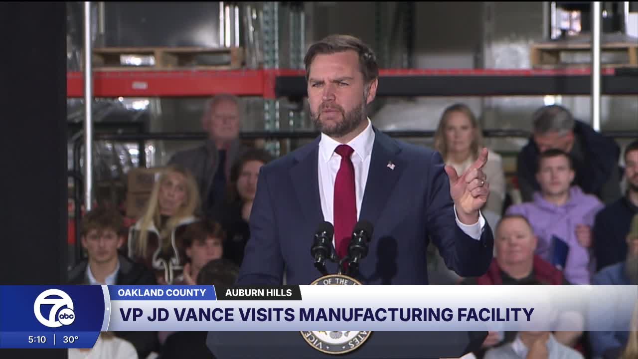 AUBURN HILLS, Mich. (WXYZ) — Vice President JD Vance visited an Auburn Hills manufacturing facility Wednesday, making the case that the Trump administration's economic policies have strengthened Michigan's manufacturing sector — even as gas prices top $4 a gallon and Michigan Democrats pushed back on his visit.