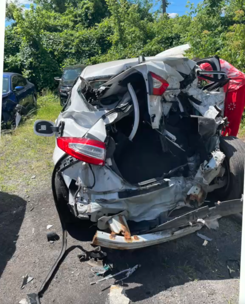 That white car was the only car they had to get to and from work. It is now totaled, but the family is focusing on the silver linings.