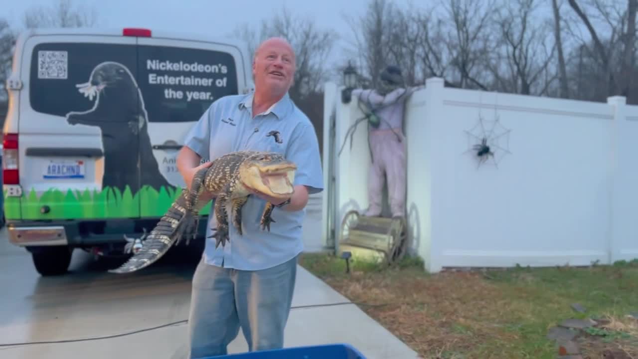 Mark Rosenthal with Animal Magic used a little magic to avoid being bitten as he handled the alligator with his bare hands.