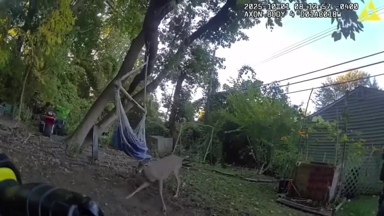 Video shows Macomb County deputies rescue deer tangled in backyard hammock