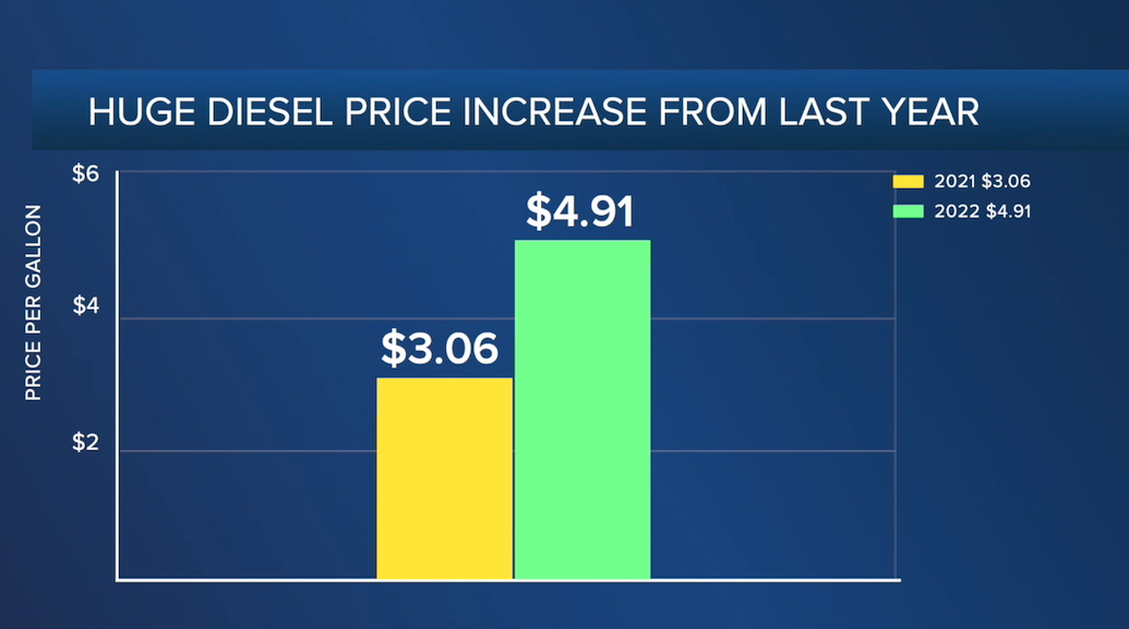 One year ago in Michigan, diesel averaged $3.06 a gallon, according to AAA. This week, the average price is $4.91 per gallon.
