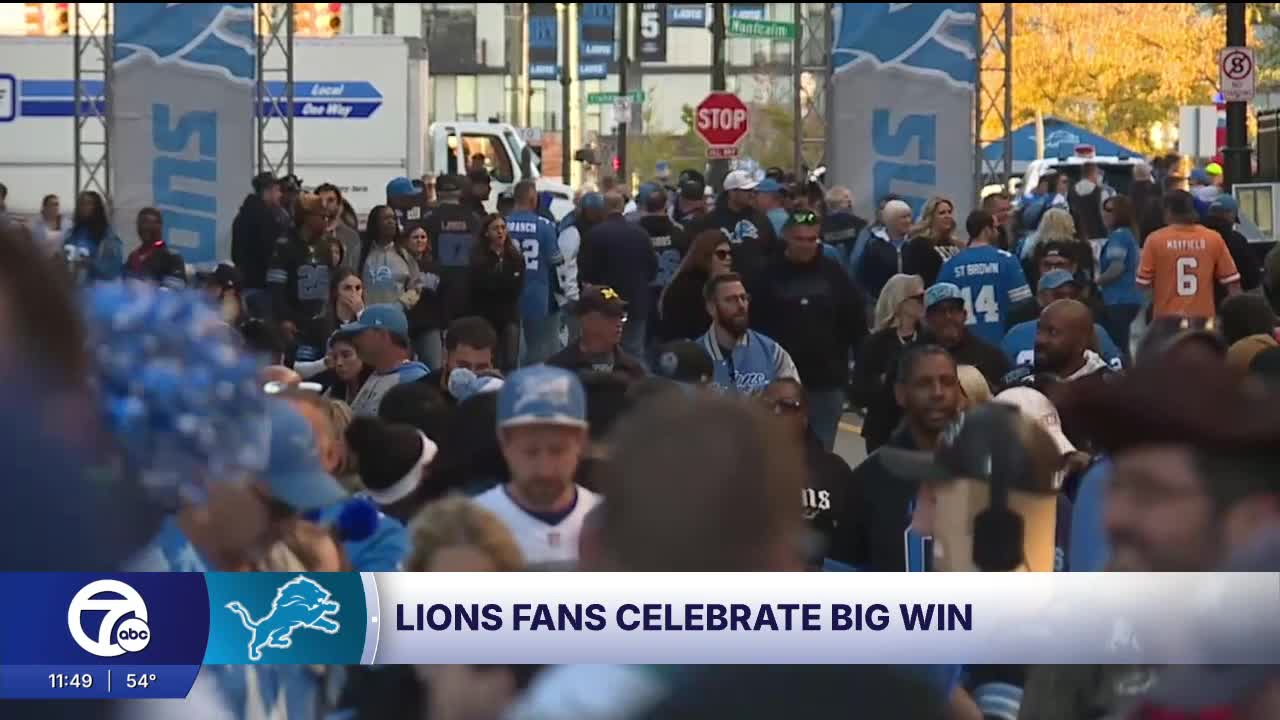 Lions fans celebrate big win in Detroit