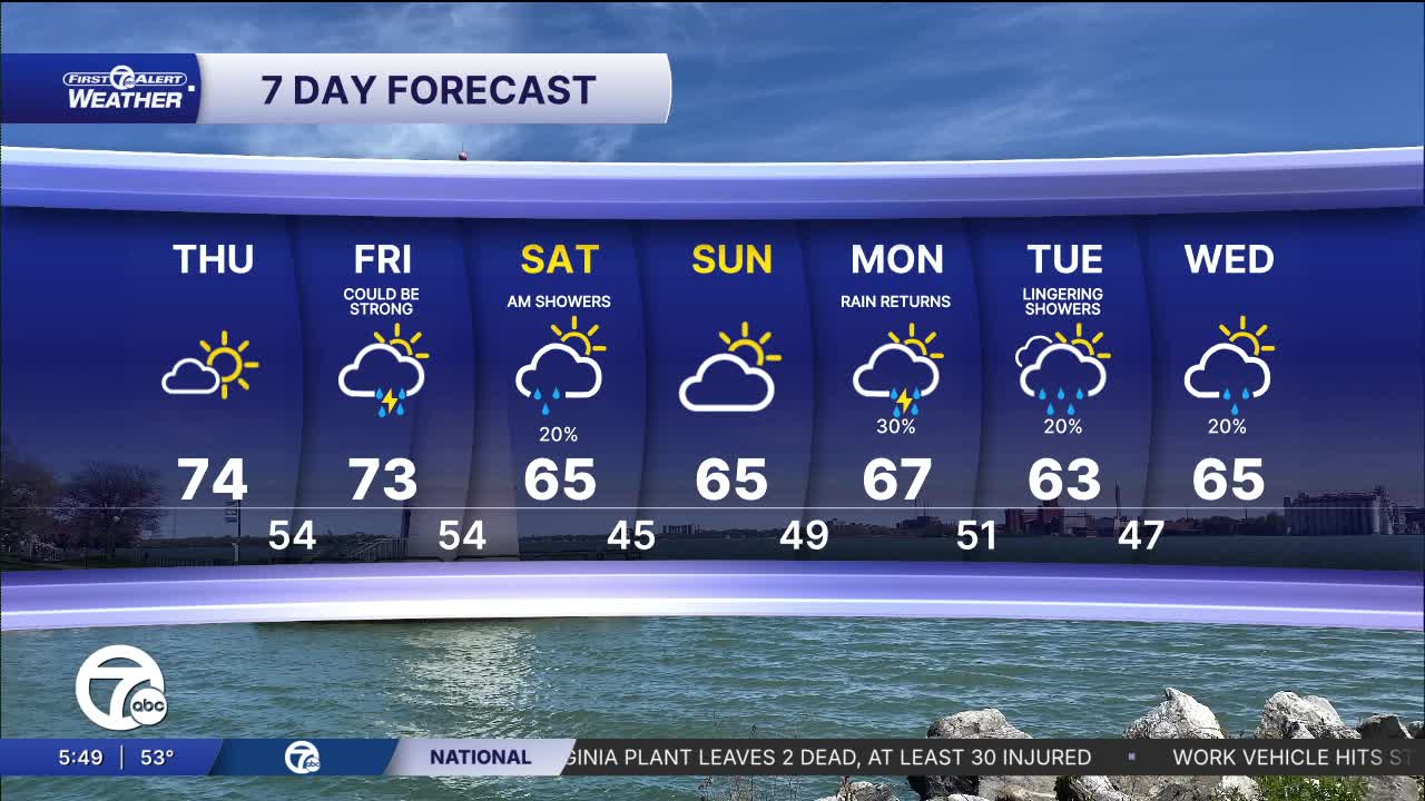 A great start to the day across Metro Detroit with sunshine from the early morning commute through the afternoon drive home. Temperatures begin in the lower 50s, then warm quickly through the 60s by late morning before reaching the low to mid 70s this afternoon. Light layers will be best early, but it’ll feel more like spring by lunchtime. A very comfortable day for getting outside after work or school.