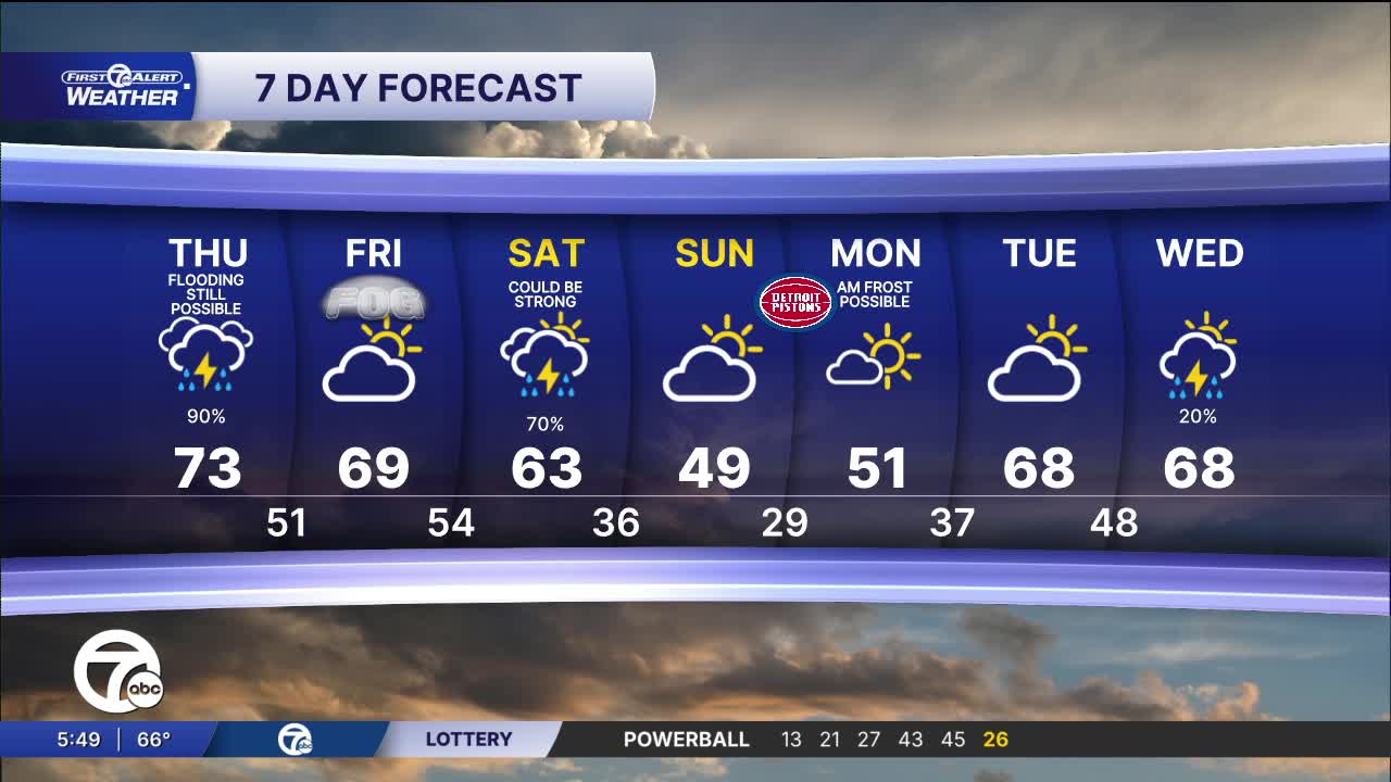 A Flood Watch is in effect for all of Southeast Michigan through 2 a.m. Friday. Several rounds of showers and thunderstorms could bring another 1-2 inches of rainfall widespread. Flooding of low lying, urban, or poor drainage areas are possible. Area rivers, creeks, and streams are expected to rise.